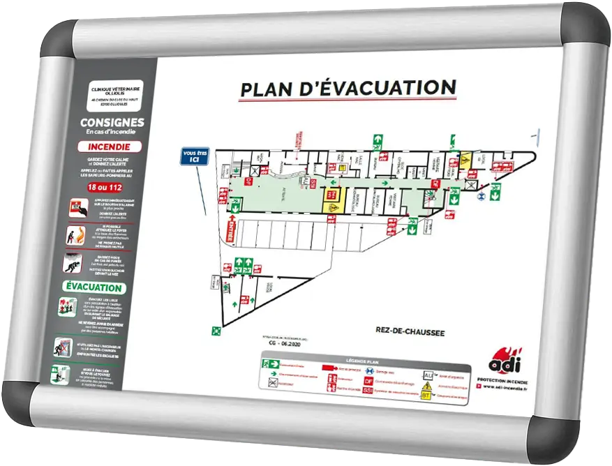 • 1 Plan d’intervention au RDC + 1 plan d’évacuation avec consignes à chaque étage