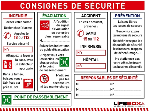 1 plan et/ou 1 consigne de sécurité à chaque accès ou sortie de secours