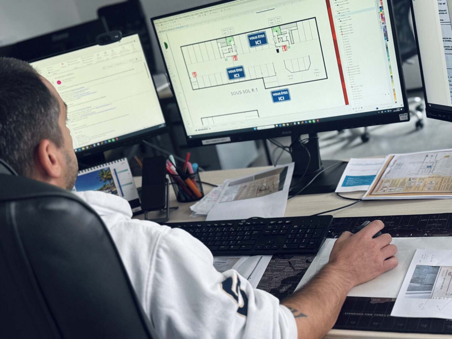 Nos graphistes réalisent vos plans et vos supports de signalétique grâce à un système de suivi complet. Du processus de conception à la livraison, chaque étape est encadrée pour garantir la qualité et la réactivité de nos interventions. Nos équipes élaborent les plans, adaptent les visuels et assurent la cohérence graphique sur l’ensemble de vos supports. Grâce à notre pôle graphique intégré, vous bénéficiez d’un accompagnement personnalisé et d’une mise en œuvre rapide de vos projets, dans le respect de votre charte et de vos délais.