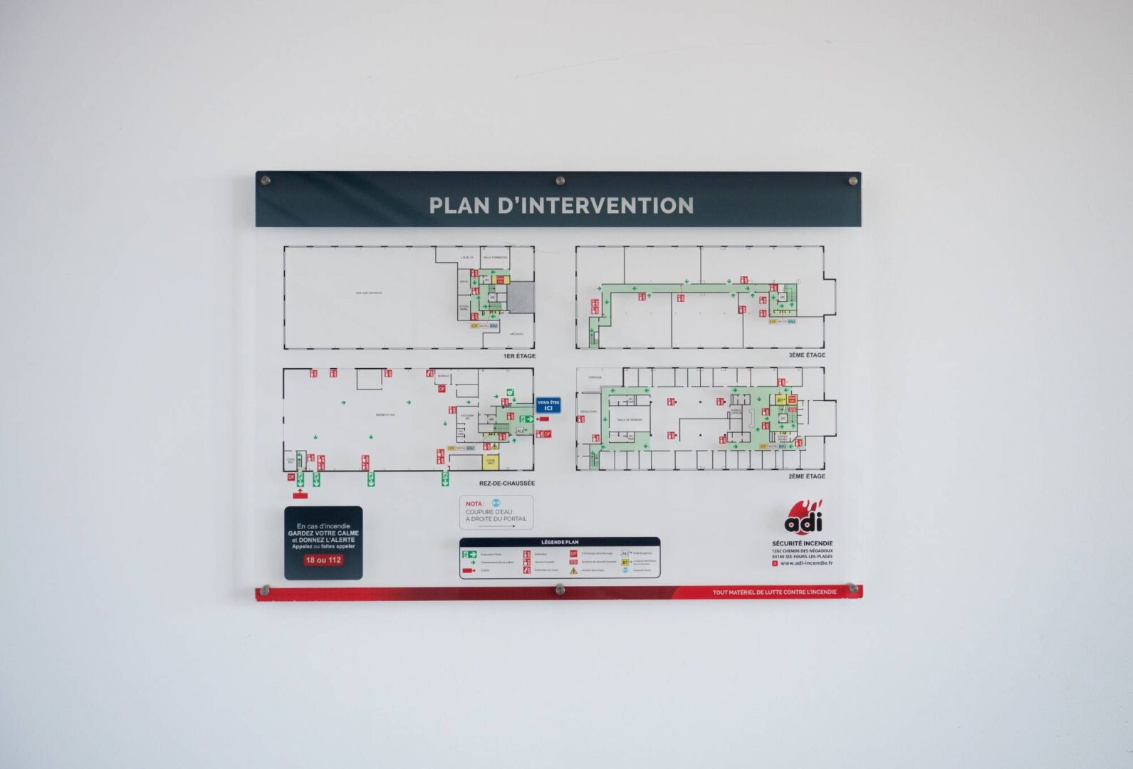 • Plans d’évacuation (par niveau, par zone, en format A3/A4 rigide)