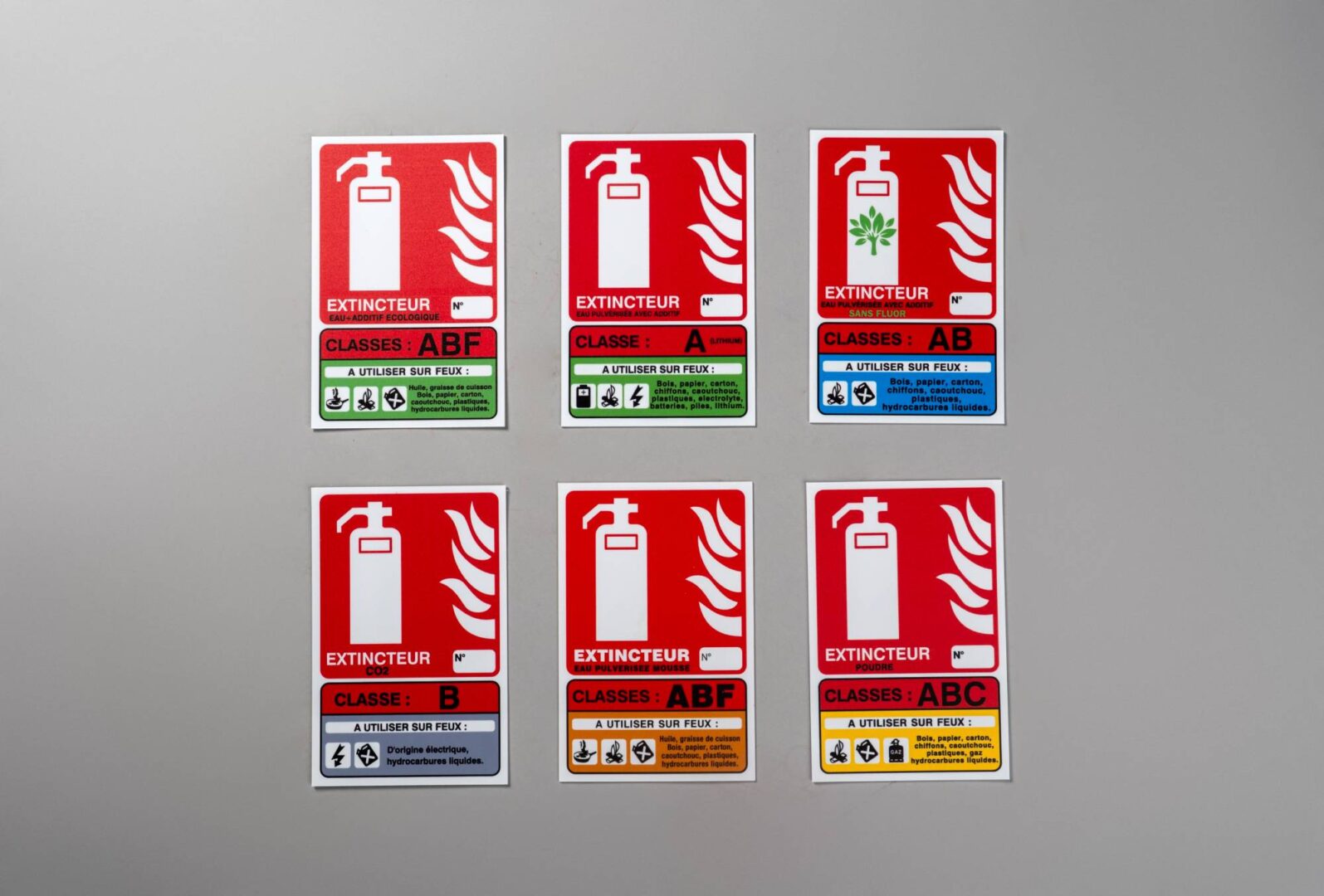 • Panneaux de signalisation incendie (extincteurs, alarmes, issues de secours, etc.)